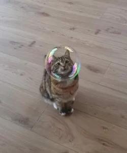 – لا أظن أن رأس القطة قد دخل في الفقاعة! ربما الأمر مجرد وهم بصري بسبب زاوية التصوير لا أكثر