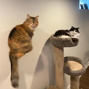 4- من الواضح أن هذه القطة تجلس على مسند غير مرئي! حاولت أن أفهم كيف تقف لكنني لم أجد أي دليل على أنها تقف على أي شيء. هل توصلت أنت لشيء يفسر الوضع لنا؟