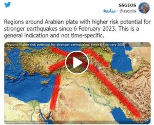 تحدد المناطق المحيطة بالصفيحة العربية ذات الاحتمالية الأعلى ل الـ..ـزلـ،،ـز ا ل القوية منذ 6 فبراير 2023، وهو التوقيت ذاته الذي حدث فيه الـ..ـزلـ،،ـز ا ل تركـ.ـيا وسـ.ـوريا، مشيرا إلى أن هذا يعد مؤشرا عامًا ولم يحدد الأمر بزمن وتوقيت معينين.