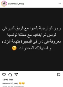 و قد شكل الخبر صدمة كبيرة بعد كشف في احد التعاليق عن اسماء اللاعبين و الفنانة و كان الخبر مكتوب كما يلي :