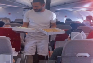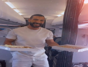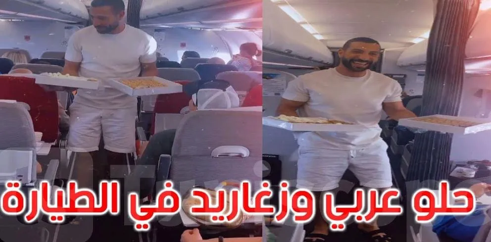 بالصور/نضال السعدي يوزع الحلويات على ركاب الطائرة العائدة إلى تونس من جينيف