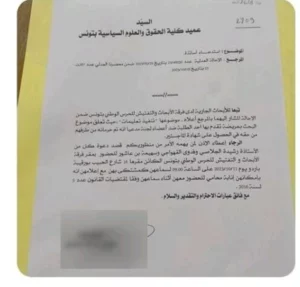 وكان يفترض أن تتحول مجموعة من الاستاذات الجامعيات الى فرقة الأبحاث والتفتيش للحرس الوطني للاستماع اليهن في شكاية تقدم بها طالب لم يحصل على شهادة الماجستير بكلية الحقوق والعلوم السياسية بتونس