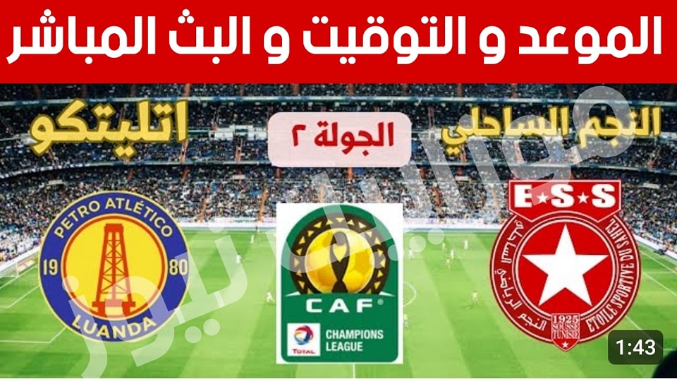 تتشوق الجماهير المشجعة لفريقي النجم الساحلي التونسي وبترو اتلتيكو الأنغولي للمباراة التي تجمع بينهما اليوم على أرض ملعب حمادي العقربي التونسي، حيث ستنقل المباراة الكروية المرتقبة اليوم بث مباشر لايف، عبر المنصات الآتية: