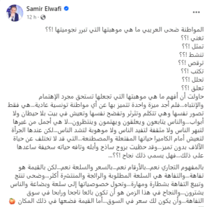 حيث كتب سمير الوافي تدوينة في هجوم غير مسبوق على ضحى العريبي قائلًا