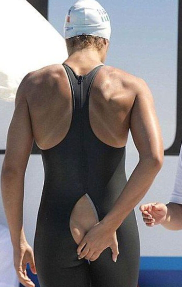 تصمم بدلات السباحين ضيقة جدا من أجل الحد من مقاومة المياه، لكننا لسنا متأكدين من السبب الذي جعل هذه البدلة الخاصة، والتي ربما كانت باهظة الثمن للغاية، تتمزق بسهولة وتكلف صاحبتها الحرمان من السباق.