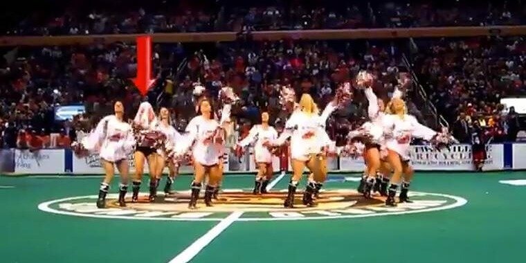 فسرعان ما جذبت أعين الجمهور إليها بعد أن انقطع حزام صدريتها بطريقة ما خلال منتصف الوصلة التشجيعية واستمرت في مواصلة التشجيع، على الأقل للحظة.
