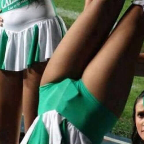 لا نعرف أين ولا متى تم التقاط هذه الصورة، ولكن لا شك أنها واحدة من أكثر الصور طرافة وإبداعا في هذه القائمة. قررت إحدى المشجعات أن تخبئ هاتفها في سروالها القصير، ولكن لأن زي التشجيع لا يتضمن في العادة جيوبا، فقد اضطرت إلى حشره بهذه الطريقة، وحين رآها أحدهم لم يتردد في التقاط صورة للفضيحة.
