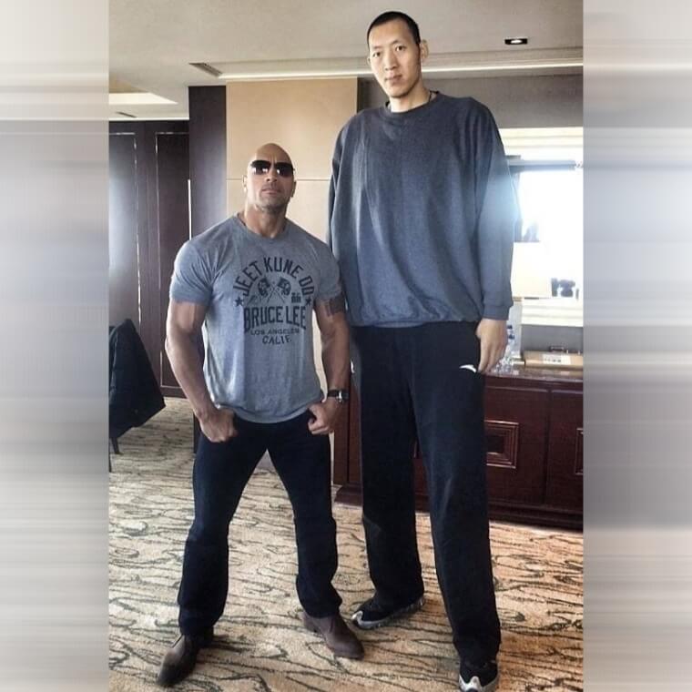 في حين أن دواين “ذا روك” جونسون رجل كبير بالفعل، إلا أنه يمكن التغلب عليه من قبل سون مينجمينج 7’9 قدم. كان لاعب كرة السلة الصيني السابق أطول لاعب في العالم وفقا لموسوعة جينيس للأرقام القياسية.