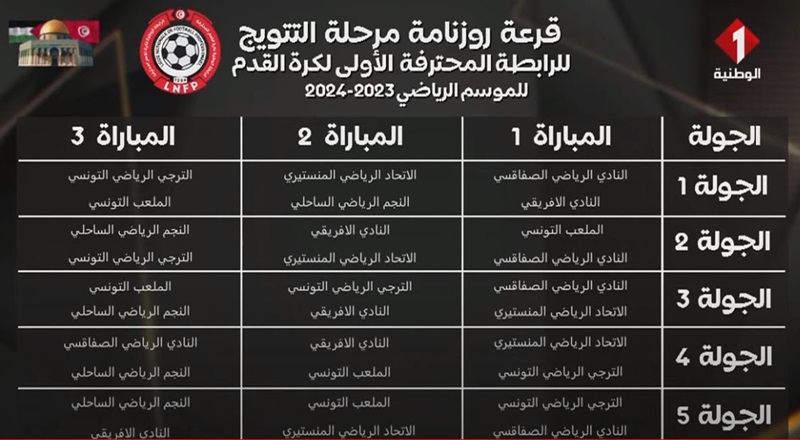 جرت مساء اليوم الأحد 14 جانفي 2024 قرعة مرحلة التتويج ضمن بطولة الرابطة المحترفة الأولى لكرة القدم.