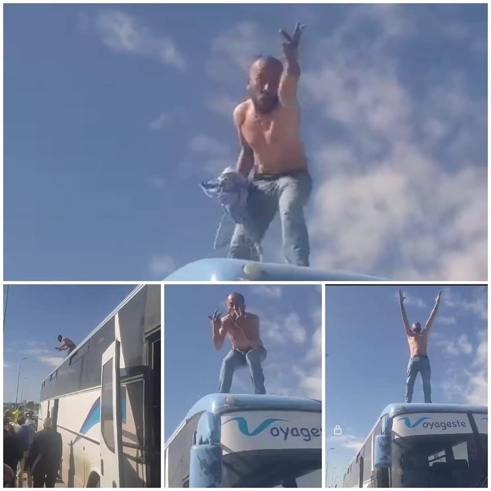 وبحسب المصدر ذاته فإن السائق اعتلى الحافلة في محاولة لالقاء نفسه وذلك احتجاجا على حجز بطاقته المهنية من طرف دورية تابعة للحرس الوطن .