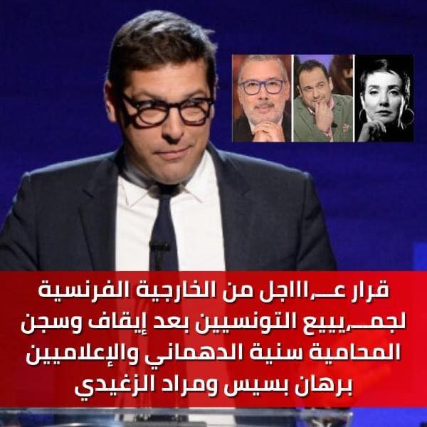 ‎قرار من الخارجية الفرنسية بعد إيقاف وسجن المحامية سنية الدهماني والإعلاميين برهان بسيس ومراد الزغيدي