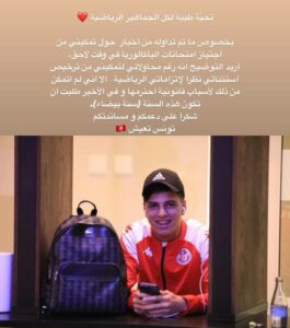 ” بالنسبة لوضع امان الله مميش يختلف عن كل مترشحي الباكالوريا والقانون ساري على الجميع والاستثناء يشمل كل التلاميذ الذين يحق لهم هذا الاستثناء حسب ما اطلعت توا على الملف متاعو ..امان الله تلميذنا وبطلنا التونسي كان والدو تقدم بمطلب في اجال معقولة انو يتمتع بسنة بيضاء ومجلس القسم وافق على هذا الإجراء يعني المسألة لم تعد تتعلق بإجتياز امتحان باكالوريا من عدمه وإنما أصبح له الحق بسنة بيضاء ككل التلاميذ الذين يكونون