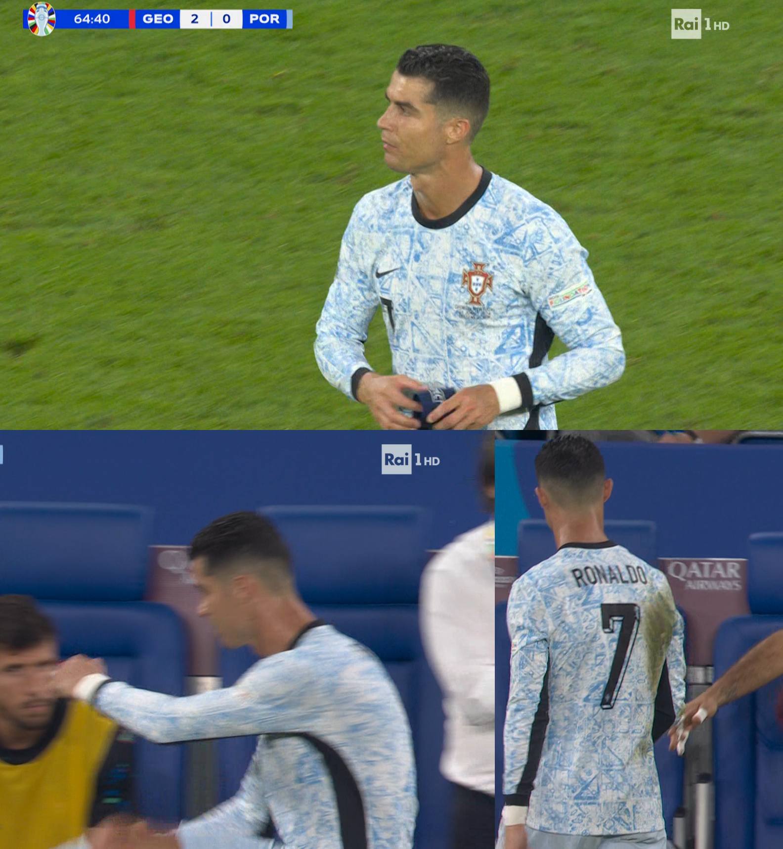 لحظة خروج كريستيانو رونالدو وردة فعله الغاضبة امام جورجيا في اليورو