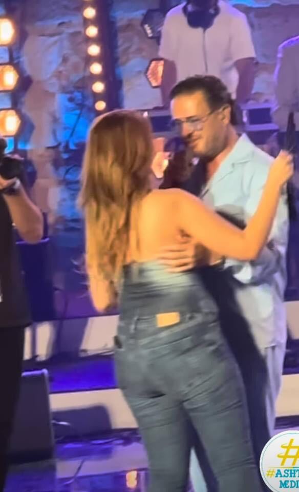 وقد تمّ تداول مقطع فيديو يوثق ذلك، وأثارت سخرية واستنكار نشطاء مواقع التواصل الاجتماعي بسبب طريقة رقصها وعناقها له.