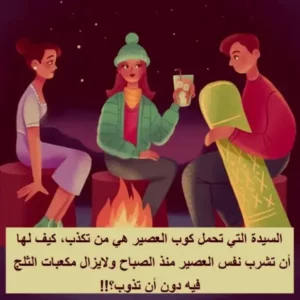 أخبرته الأولى أنها كانت تتزلج على الجليد بحذاء التزلج طوال اليوم كذلك، أما الأخرى فأخبرته أنها كانت تجلس بجوار الڼار وتستمتع بشرب نفس العصير منذ الصباح. ابتسم أحمد على الفور لأنه علم أن إحداهن تكذب. ولكن كيف؟