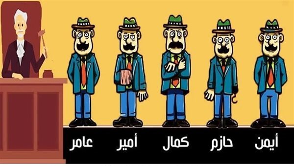 “أعتقد أن اللص هو واحد من 5 إخوة مخادعين: عامر وأمير وكمال وحازم وايمن” يقول الشرطى “لقد أحضرناهم بالفعل تعال إلى هنا. الق نطرة عليهم وأخبرنا من هو اللص”.