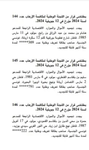 وفي ما يلي تفاصيل القرارات الصادرة عن اللجنة والتي نُشِرت بالرائد الرسمي بتاريخ اليوم الثلاثاء 16 جويلية 2024: