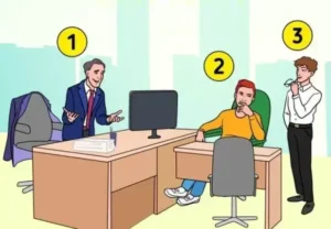 الجواب: السترة الموجودة على كرسي المدير تنتمي بالتأكيد للشخص رقم 3، وبالتالي فإنه هو المدير!
