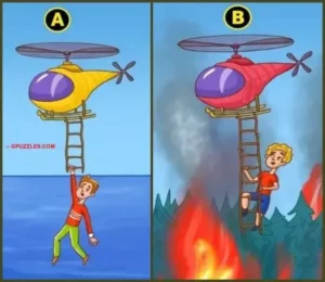 الجواب: الشخص الموجود على اليسار هو من تم إنقاذه، لكن الشخص على اليمين على وشك الخطړ حيث إن الحبل سوف ينقطع!