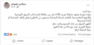 و هذا ما كشفه أيضاً النائب بالبرلمان بدر الدين قمودي، في تدوينة نشرها على صفحته الرسمية بالفيسبوك، أن ميناء سوسة شهد محاولة توريد 2780 طن من البطاطا الفاسدة إلى السوق التونسية، مبرزا أن الأجهزة المتخصصة كشفت إصابة هذه البضاعة بصنفين من البكتيريا، حيث تقرر إتلافها أو إعادة تصديرها.