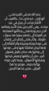 حين منع نظام الرئيس السابق بشار الأسد عائلة زوجة الهداوي وهي سورية الجنسية من العودة الى وطنها بسبب ‘تهمة’ الانتماء للمعارضة…
