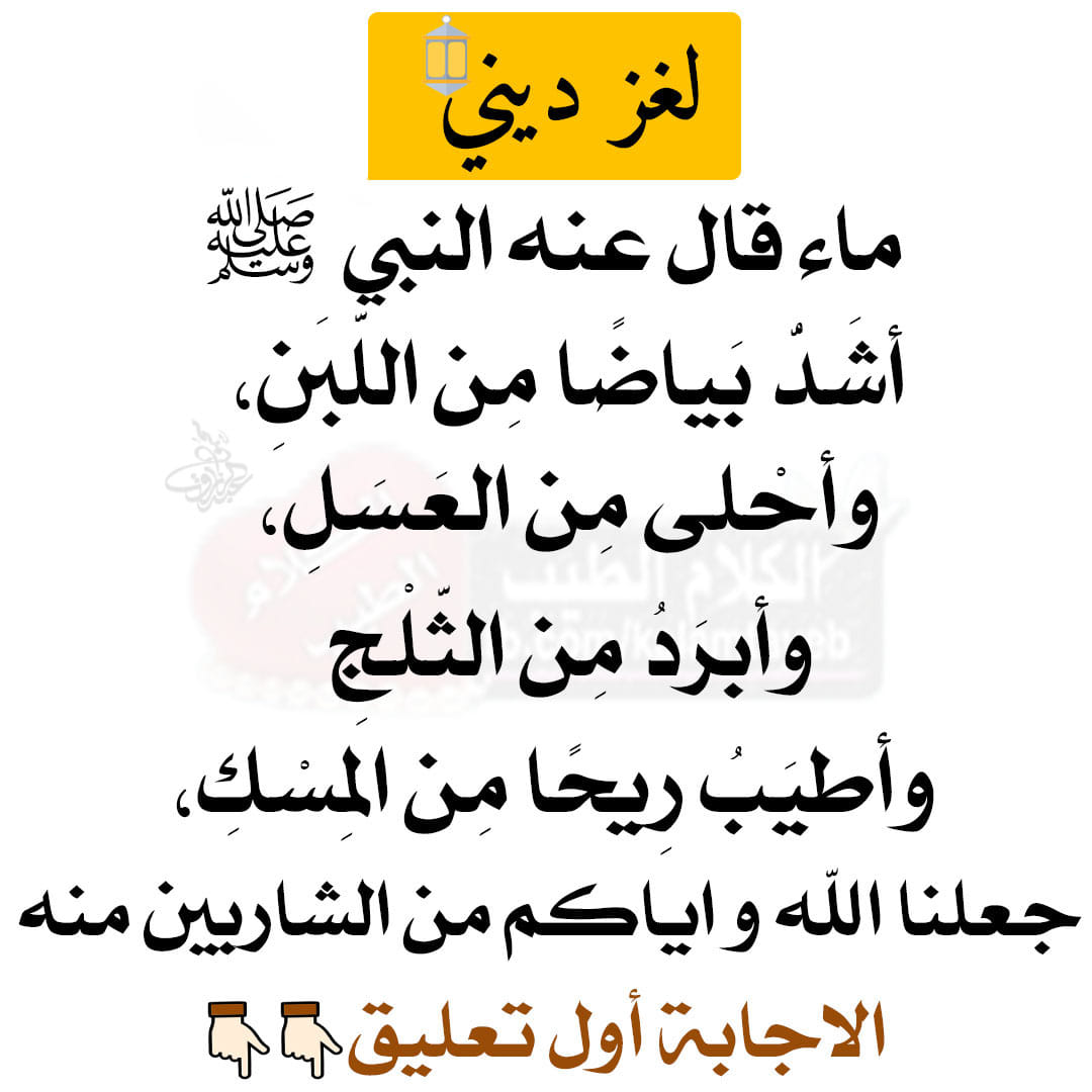 ماء قال عنه النبي ﷺ أشَدُّ بَياضًا مِن اللَّبَنِ، وأحْلى مِن العَسَلِ، وأبرَدُ مِن الثَّلْجِ