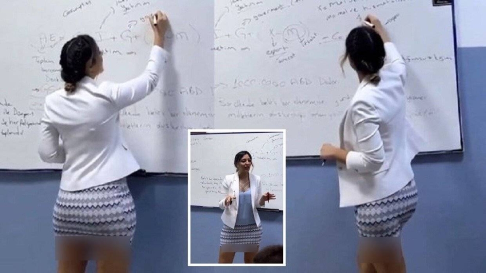 وظهرت مُدرسة الاقتصاد التركية، فيدان أتالاي، في الفيديو وهي ترتدي تنورة قصيرة جدا، بينما تشرح الدرس داخل قاعة تضم مجموعة من الطلاب.