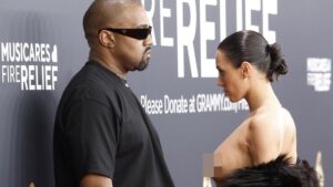 في أكبر ليلة موسيقية (حفل جوائز غرامي)، ارتدى الموسيقي الذي تحول إلى مصمم أزياء، البالغ من العمر 47 عامًا، زيه الأسود المعتاد مع نظارة شمسية وسلسلة من الألماس، بينما ارتدت بيانكا سينسوري معطفًا أسود طويلًا من الفرو.