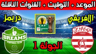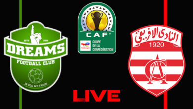 بث مباشر لمباراة النادي الافريقي و دريمز الغاني