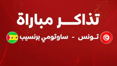 تــونس- ساوتومي برنسيب : تذاكـــر المباراة على ذمة الجماهير بمناسبة مباراة الجولة الأولى من تصفيات كأس العــالم بين منتخبي تونس…