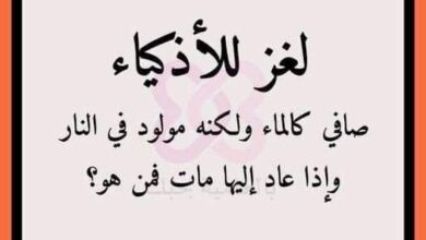 صافي كالماء لكنه مولود في النار واذا عاد اليها مات؟ صاف كالماء ولكنه مولود في النار واذا عاد اليها مات…