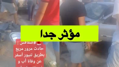 مأساة في صفاقس : وفاة الاب والزوجة وهم في طريقهم لحفل عقد قران ابنهما جدّ مساء اليوم حادث مرور مريع…