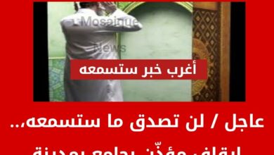 أغرب خبر ستسمعه إيقاف مؤذّن بجامع بمدينة الحمامات و هذا ما كان يفعله أكد مصدر مسؤول في تصريح له أن…